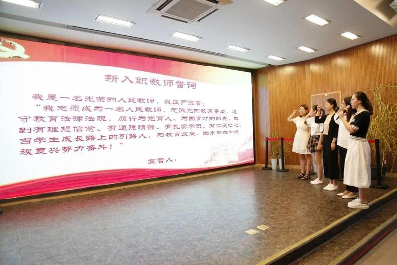 罗湖外语初中学校组织全体新入职教师进行了宣誓。会上,学校老师学习了党纪、法规及师德师风的相关文件。宣誓完毕,校长肖继宏寄语新教师们:在教育教学工作中践行自己的誓言,争做政治素质过硬、业务能力精湛、育人水平高超的高素质教师。