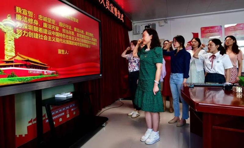近期,罗湖区教育系统中小学幼儿园对近两年新入职教师组织开展从教宣誓活动,老师们承诺在今后工作中遵纪守法、廉洁从教,做“四有”好老师。