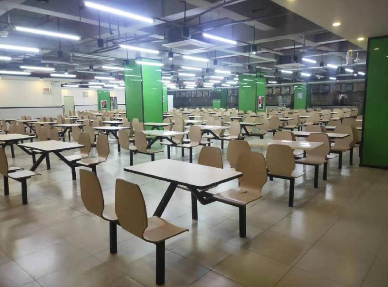 食堂面积为980平方米,座位数400余个,日供应能力达5000人次。