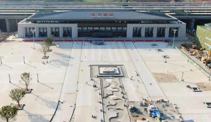 龙川西站位于河源龙川县的佗城镇,站房建筑面积2万平方米,站台规模 4台12 线,候车大厅6200平方米。设计理念为“秦汉之韵,厚德龙川”,充分汲取了佗城历史建筑特点和龙川学宫的建筑形式。