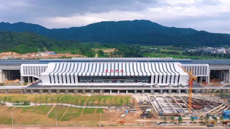 东莞南站位于东莞市塘厦镇林村社区东方红小组,是赣深高铁东莞境内的唯一站点,也是赣深高铁全线第二大站,站场规模4台8线,站房面积28400平方米。站房以“岭南粤秀,海纳百川”为创意,以现代设计手法进行表达,兼具地方性和时代性。