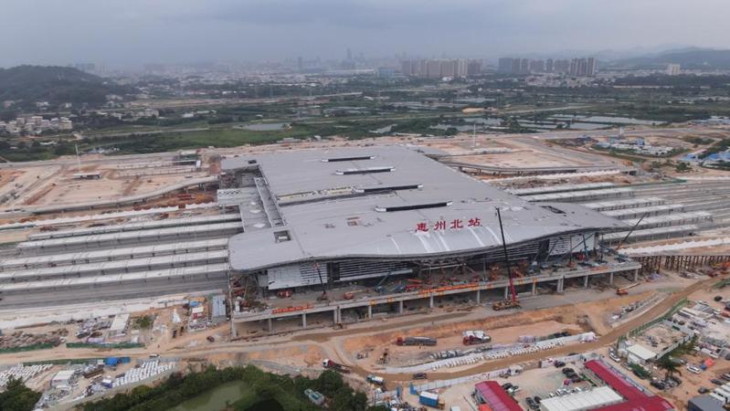 目前,惠州北站站房正在进行室外幕墙工程、屋面檐口铝板安装和室内装饰装修工程,预计本月底将完成所有站房剩余装修工程及南北站房斗拱曲面玻璃幕墙装修,达到初步验收条件。