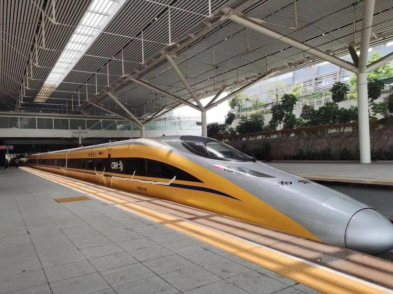9月12日,赣深高铁首列黄色高速铁路综合检测列车驶出深圳北站