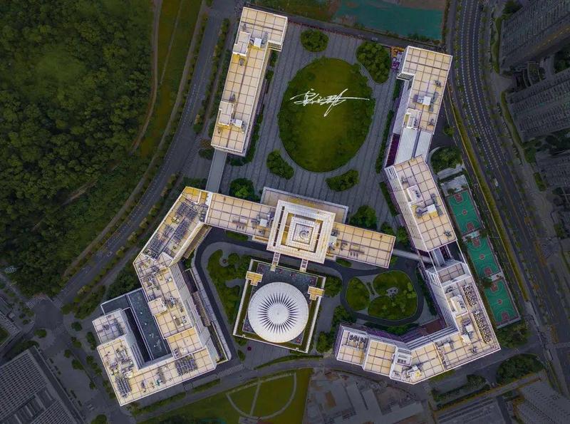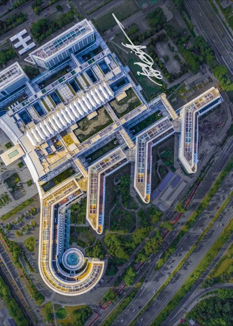 深圳大学丽湖校区就是之前的西丽校区。从空中看,丽湖校区五个建筑楼围合成了一个圈子,采用了大体集中,个体独立的布局模式。画面中的一期建筑群将与北侧的二期建筑们共同构成一个北斗星形状的布局。