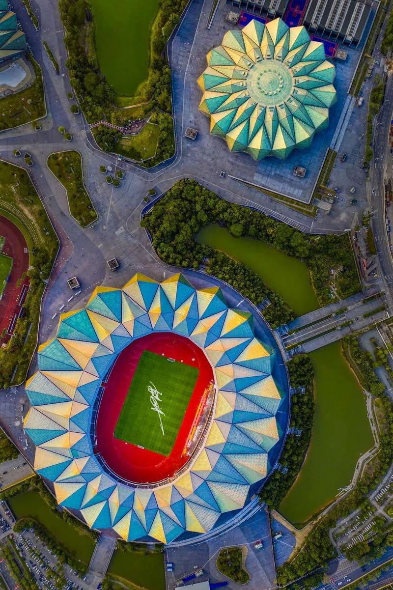 大运中心由“一场和两馆”构成,入境的这两朵可爱的胸花,大的一个是大运中心体育馆;小的一个是大运城。从2007世界大运会申报成功的那刻起,体育馆从零到有,只用了一年时间。