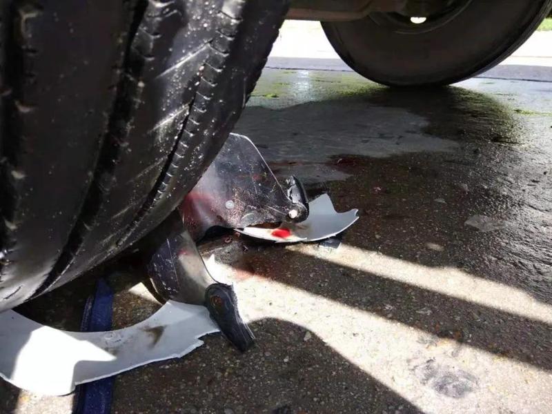盲区抢行,电动车被卷入车底