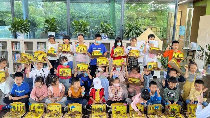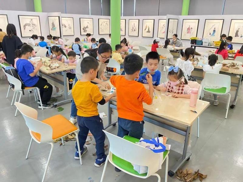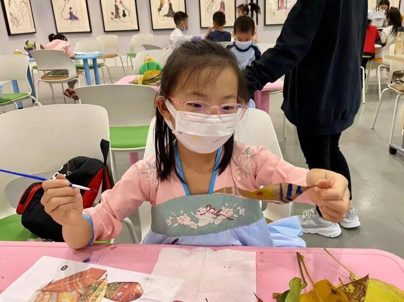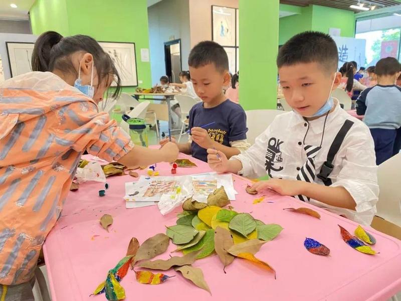“一年好景君须记,最是橙黄橘绿时”,霜叶红,秋意浓,青绿色、金黄色、深红色,装点着金秋。秋色在万物之间弥漫开来,仿佛挥洒在天地间的一幅幅唯美画卷。在风情万种的秋色中感悟古代文人笔下的秋日画卷和秋意诗情,有“金风玉露一相逢”的喜悦,有“晴空一鹤排云上”的疏旷,有“留得枯荷听雨声”的情致。走进这个金色的季节,家长们在艺文儿童文学院聆听尹昌龙老师解读诗人们的同时,小朋友就在三楼艺术馆体验手工制作。
