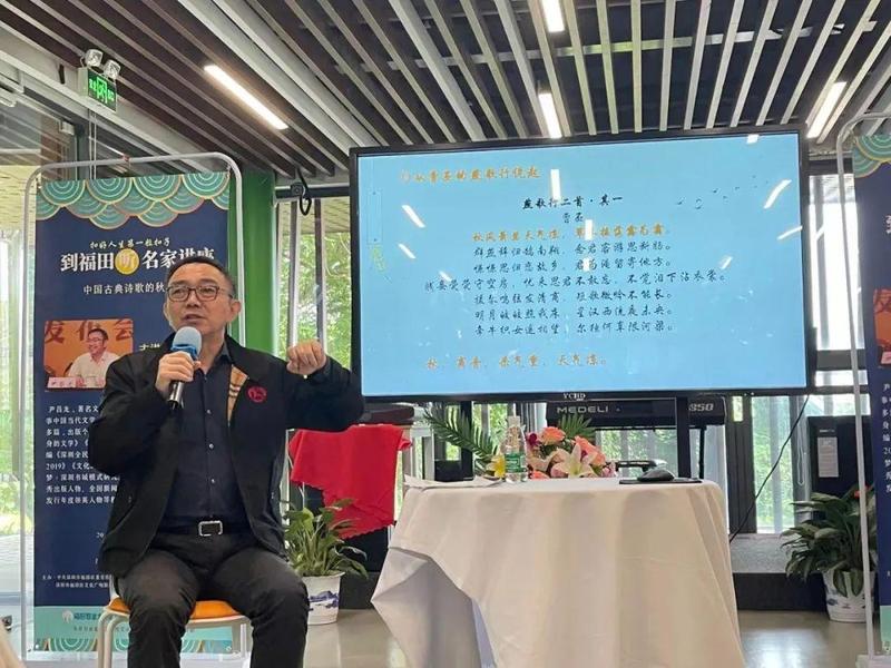 10月24日上午,在香蜜公园内的“最美文学艺术小镇”艺文儿童文学院,著名文化学者尹昌龙先生开讲《中国古典诗歌的秋意表达》,与读者分享关于秋天的中国古典诗歌的审美与流传故事。