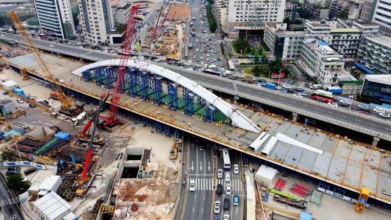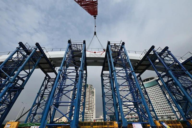 此次主拱顺利合龙,为年底永久桥顺利通车以及钢便桥拆除、下沉广场施工与三期道路疏解施工打下坚实基础。