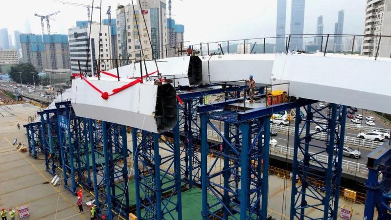 建设单位相继攻克了交通疏解难度大、跨路吊装安全风险高、工期紧、施工区域各专业交叉作业多等诸多难题,大力推广装配式工装技术;