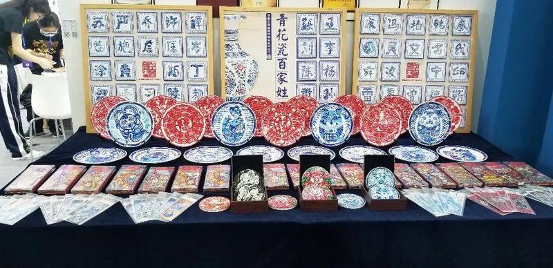 以优秀传统艺术——青花瓷图案风格的传承为基石,丰富的中华姓氏文化内涵为人文背景,采用项目合作方式,横跨5届高一年级美术课堂创作,全员参与并不断增补各种姓氏,先后遴选了近500张优秀姓氏图案设计作品。在引导学生进行美术文创实践活动中,拓宽产品的种类、展示方式和传播渠道,仅姓氏文创产品总数就已突破42600件。各种姓氏文创产品在校内外开放活动中展示和销售,不仅对传统艺术的传承、推广和创新起到了长足的促进作用,还助力学校艺术品牌建设,让原创者(学生)体验艺术创作生活化的完整过程。