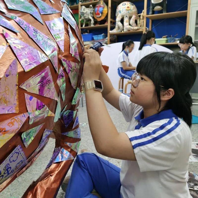 深圳市翠竹外国语实验学校的艺术工作坊继2018年入选市艺展现场展示之后,今年冲出重围入选省赛,这是翠竹外国语实验学校十年如一日的装置艺术教育的累累硕果,学校给学生一个创意发挥、动手时间的平台,孩子们在老师们的带领下推陈出新、创意表达,这个工作坊既是艺术教育的载体,也是劳动教育、创意思维的载体,培养了孩子们天马行空的想象力和动手能力。