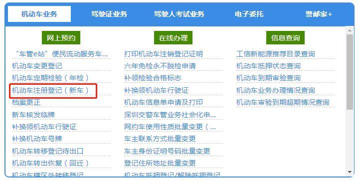 向下滑,找到【机动车注册登记】