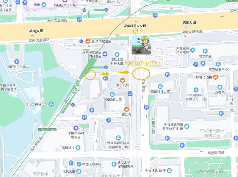 2021年11月17日至2022年4月1日,封闭南山区科技南一路(地铁科技大厦至科苑南路口段)进行施工