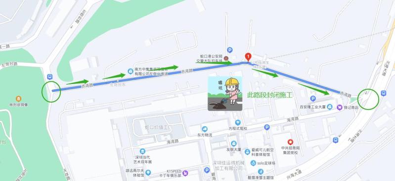 原经此路段通行的车辆,可改沿兴海大道、赤湾六路或周边其他道路通行