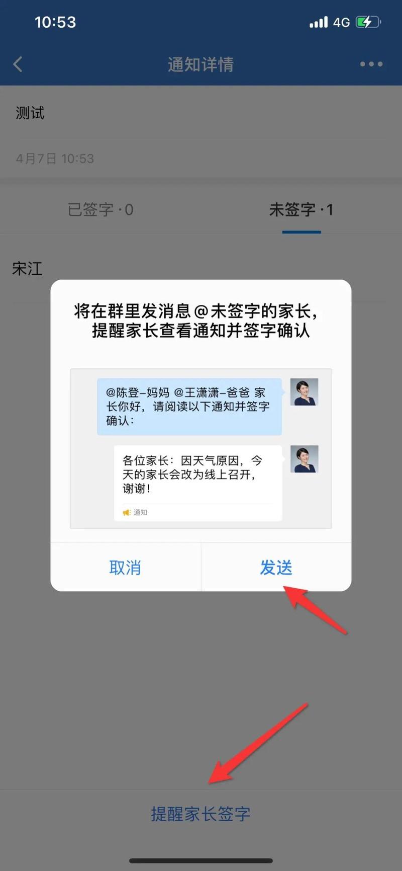 例如学校需要发通知给家长签字确认,只需要借助教育云平台,就能发送到家长的手机上,家长只需要在手机上签字并确认,班主任就能够收到回馈,既不用担心孩子弄丢纸质通知,也减轻老师的工作负担。