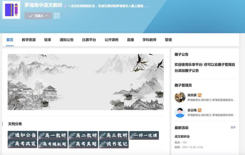 同时,罗湖教研平台也为教师建立了专属的云教研社区:按小初高学科分类建立不同教研圈子,教师能够加入各自学科圈子,与其他学科教师互相交流、学习。