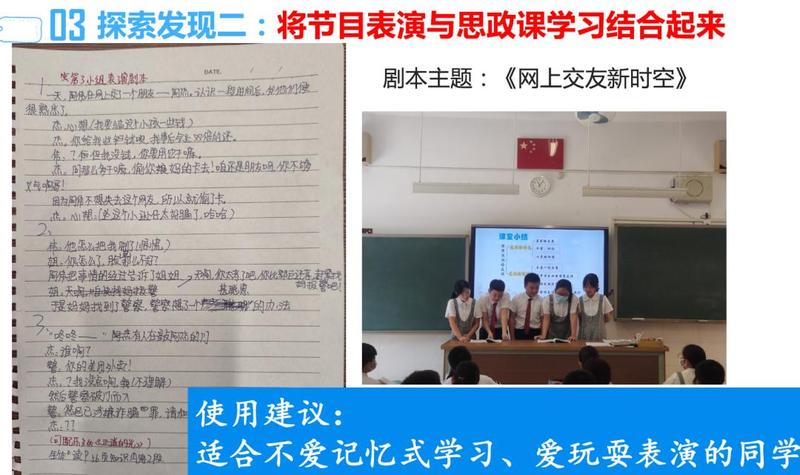 (1)“不拘泥于形式”的爱好型作业:将美术爱好与思政课学习结合起来;将视频剪辑爱好与思政课学习结合起来;将节目表演与思政课学习结合起来。