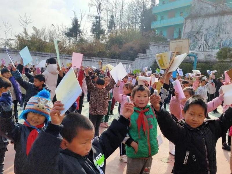 同时,大鹏第二小学师生用自己的行动积极参与到帮扶的活动中来,共同认购捐赠近400个书包及一批文具,解决了上坪寨织金小学孩子们上学的实际问题。孩子们背着整齐的书包走在山路上,成为当地一道亮丽的风景线。