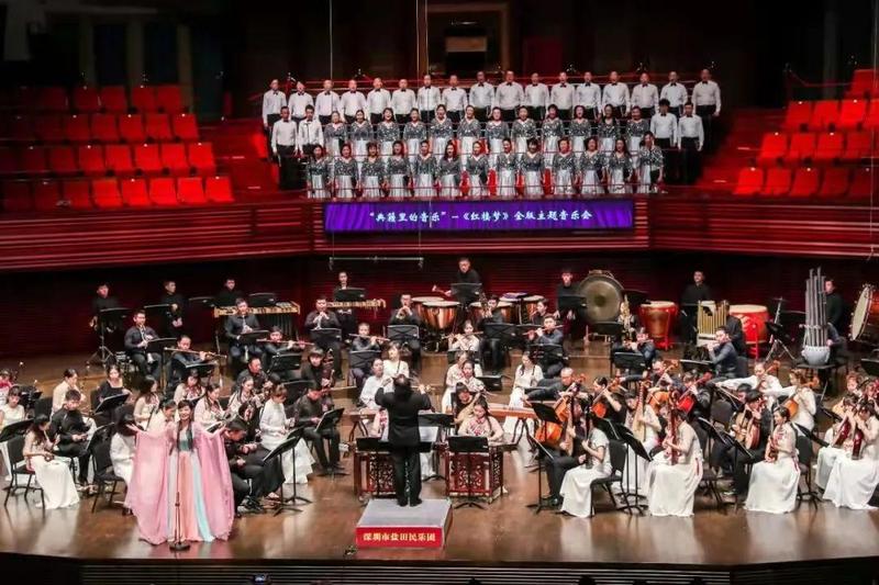 据悉,《红楼梦》全版主题音乐会是在原版《红楼梦》音乐的基础上进行的艺术再创作,是著名作曲家王立平先生呕心沥血之作,深圳盐田民乐团以纯正优雅,民族特色浓郁的演奏搭配声乐独唱、齐唱等形式,淋漓尽致地展现乐曲的内涵以及《红楼梦》这一部传世名著的无穷魅力。该场音乐会通过电视剧《红楼梦》中经典曲目与民乐的结合,用充满东方神韵的优美音乐,诠释出一个个曲折婉转的红楼梦境,让人才们在民族音乐的熏陶下,体会《红楼梦》原著人物如歌、如泣、如诉的时代命运交响曲。