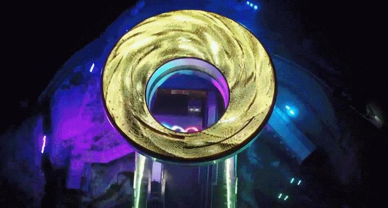 晚上灯光亮起,星空璀璨,冰丝带熠熠生辉。