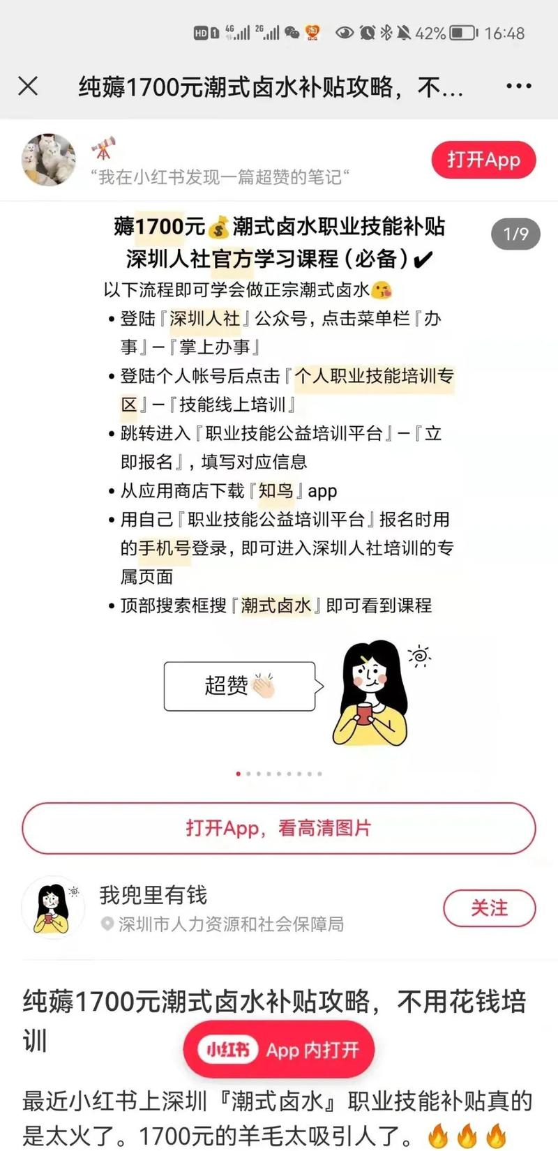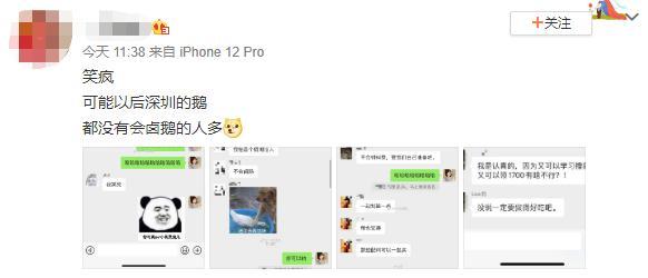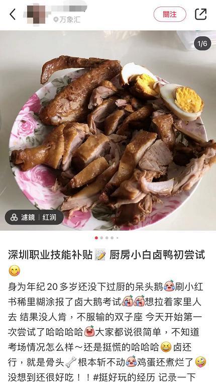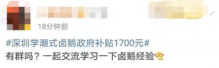“深圳政府给具有卤鹅制作技能的人才发补贴,每人1700元,通过政府组织的职业能力考核获得证书即可申请。卤鹅操作简单一学就会,通过率据说高达97%,考场还提供大鹅,卤完还能打包回家。”