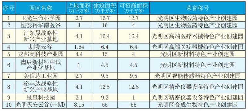 近年来,光明区聚焦先进制造业发展需求,大力推进特色园区建设,积极应对疫情带来的各种困难压力和挑战,加快转型升级步伐,推动产业链、创新链、价值链深度重构,培育壮大一批标志性、引领性的先进产业集群,不仅提高了经济发展密度,同时也提升了园区创新发展能力。首批打造的十大特色产业创建园,总占地面积38.9万平方米,总建筑面积161.2万平方米,可供应厂房98万平方米。