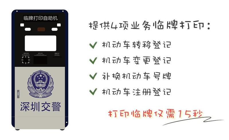在深圳市车管所预约办理业务后,还可通过临牌打印机,现场自助打印临牌。