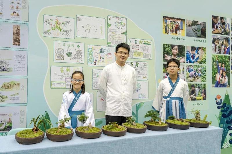 以苔藓课程为例,学校组织了实验班每个学期13个课时的主题精讲课程,整合语文、科学等学科,请本校的老师、请苔藓植物专家张力、左勤博士到校或实地授课,从认识观察苔藓入手,学会辨识苔藓植物,知晓苔藓植物的生态价值,学习有关苔藓的古诗词,创作自然笔记,领悟苔藓的文化和精神内涵,激发学生保护生态环境的意识。