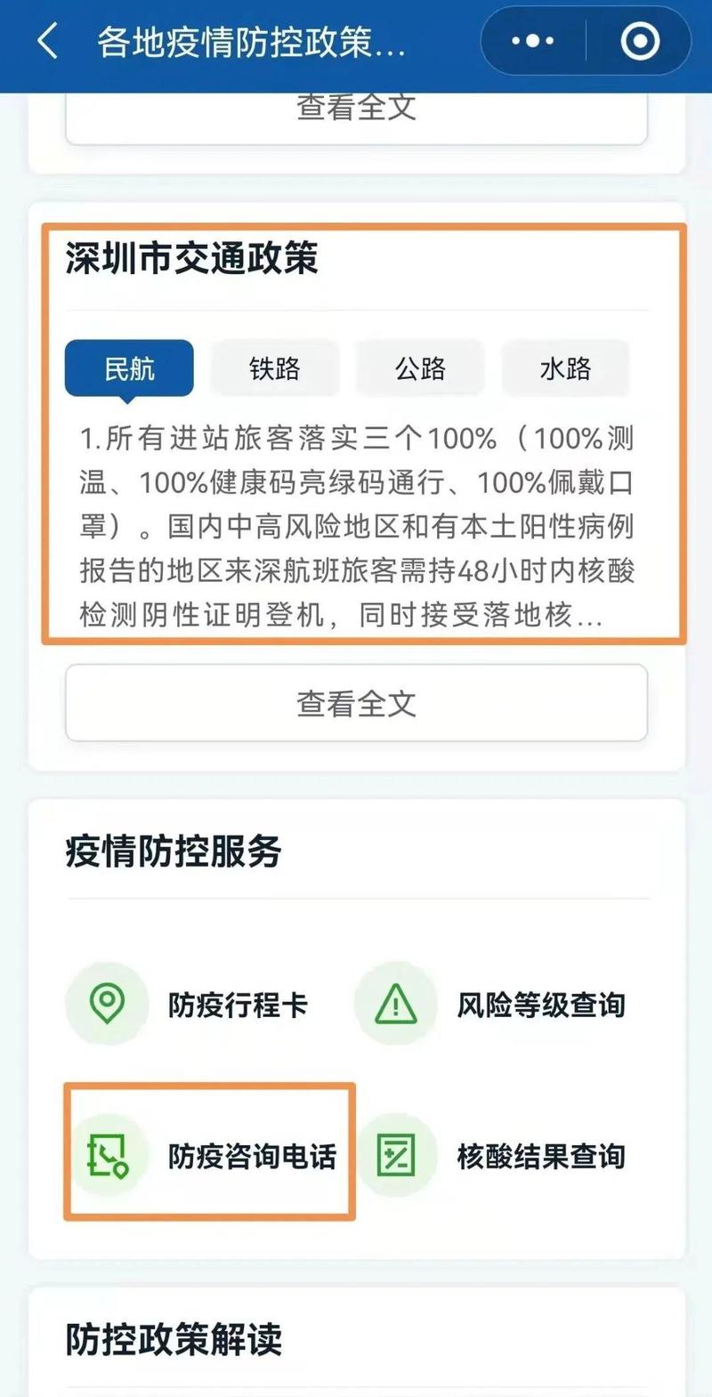 1月24日,据深圳市疾控中心消息,市民出行前,可以通过“国务院”微信小程序,查询全国的防控政策,以及各地的疫情防控咨询电话。