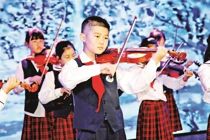 课后服务时段,坪洲小学学生在校学习小提琴。