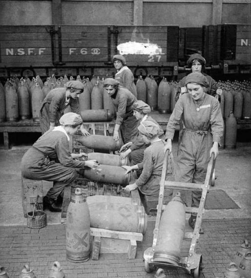 英国大量男子参战,妇女直接参加战时经济和社会事务