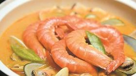 在东莞某国际大酒店,掌勺主厨将新鲜九节虾去掉虾肠洗净,土豆切丁入油锅香炸备用。