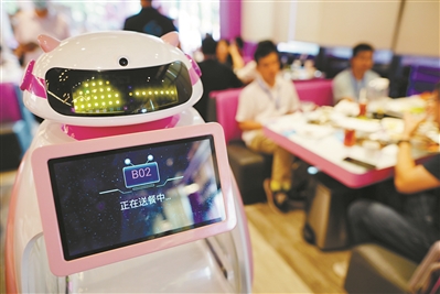 千玺餐饮旗下机器人在FOODOM天降美食王国机器人餐厅综合厅亮相献技。