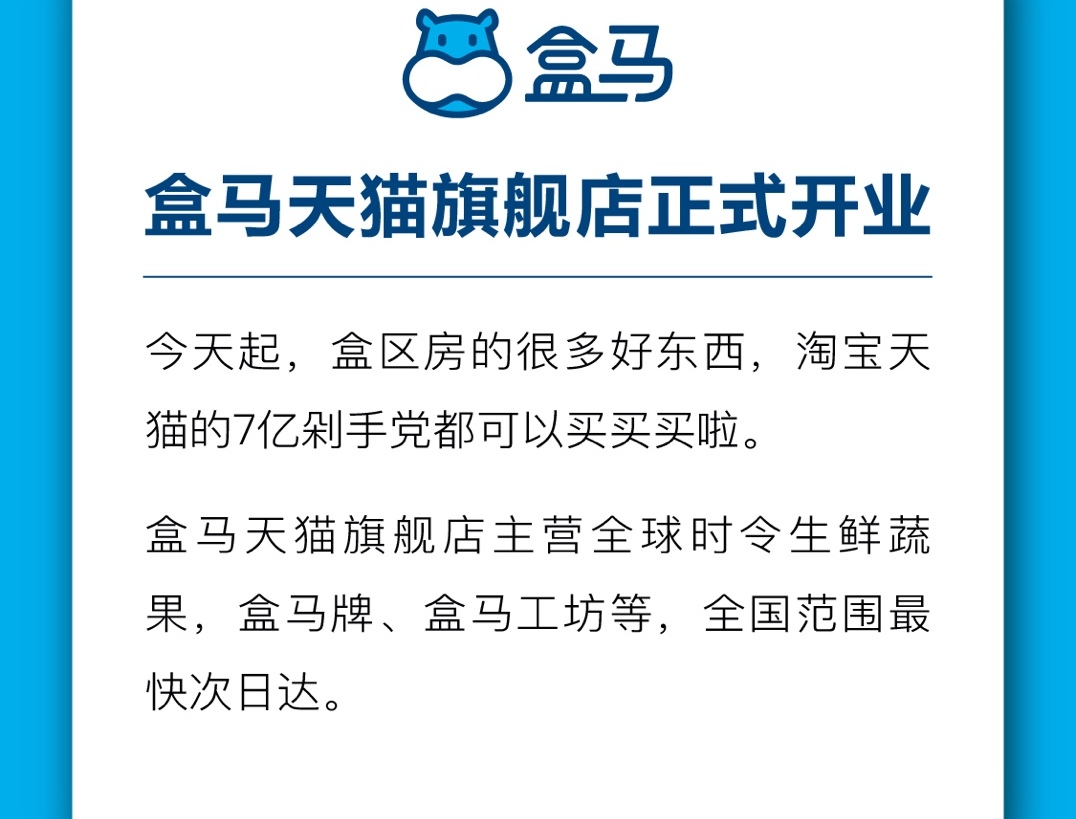 生鲜农货走出盒区房 盒马旗舰店登陆天猫开售