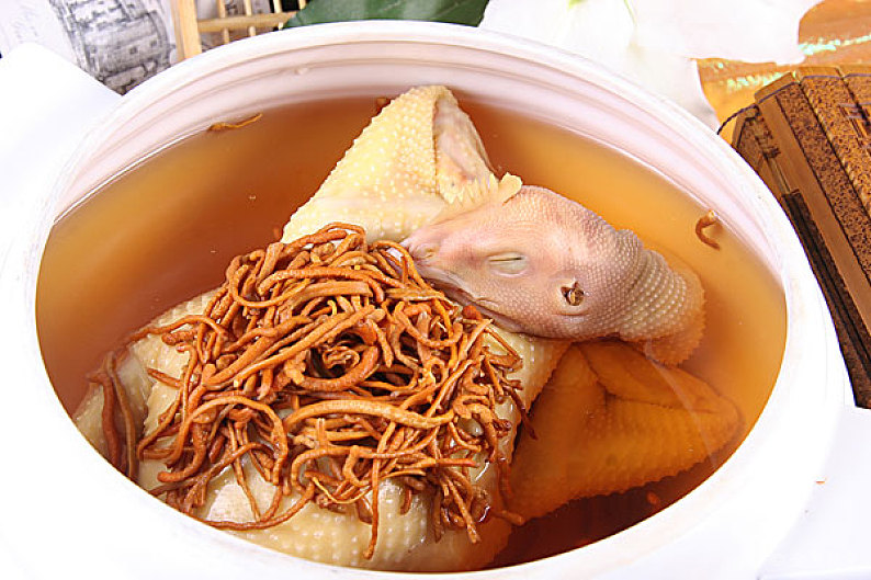 虫草多用于煲汤,和鸡、鸽最为般配.