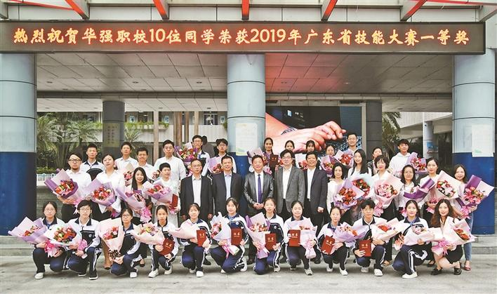 4月1日,华强职业技术学校表彰了在2019年广东省技能大赛获奖的师生。