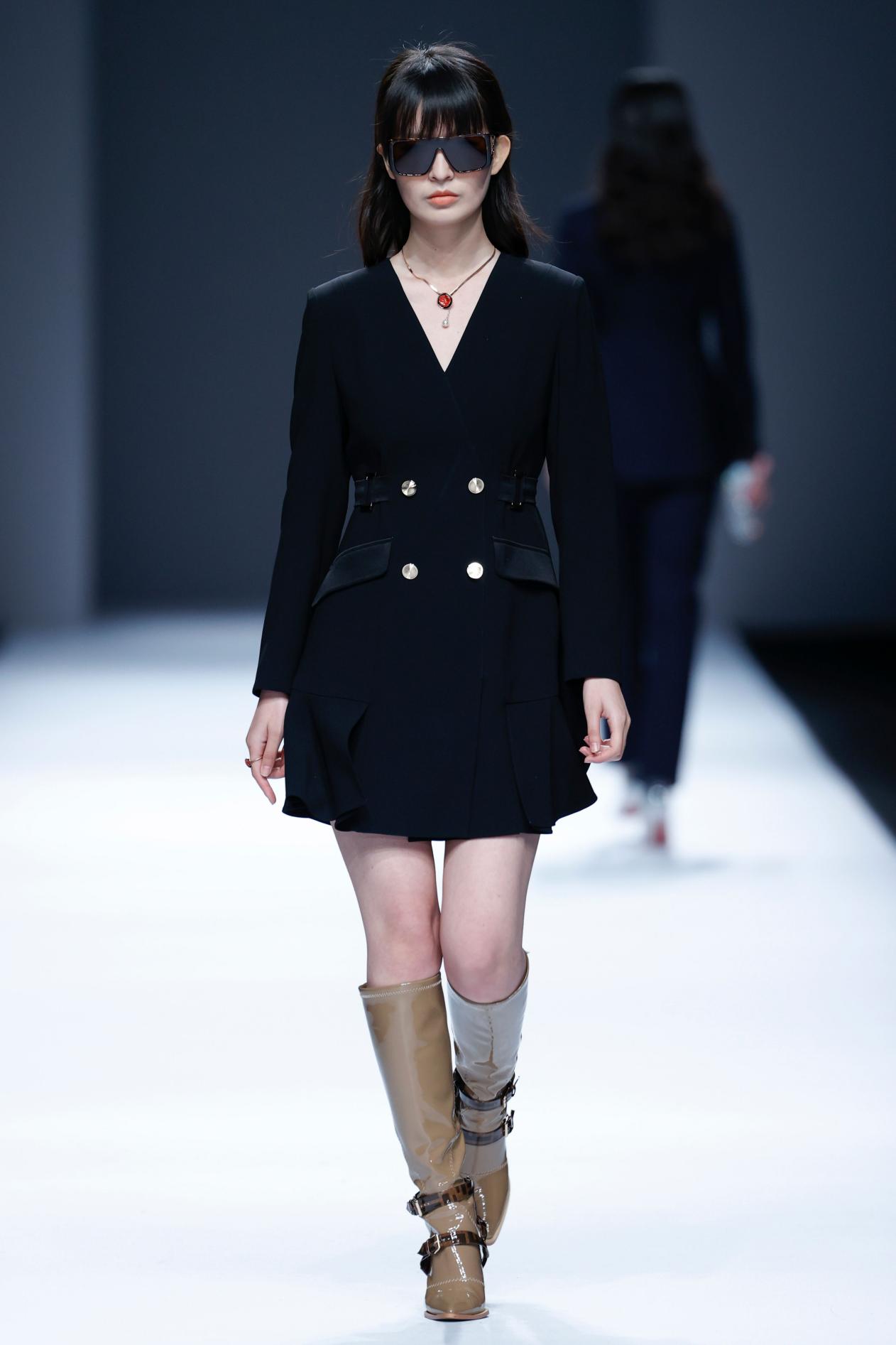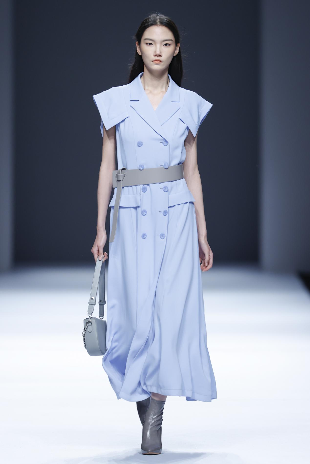 设计师罗宇豪的创作同样给Song of Song歌中歌带来新鲜视觉,加入新现代主义建筑中理性主义、功能主义、减少主义的内涵,整个系列的服装与配件展现浑然天成的现代摩登范儿,嵌入双“S”经典图案的几何金属饰棒,展现出服饰简约大气、精致细节的美感。