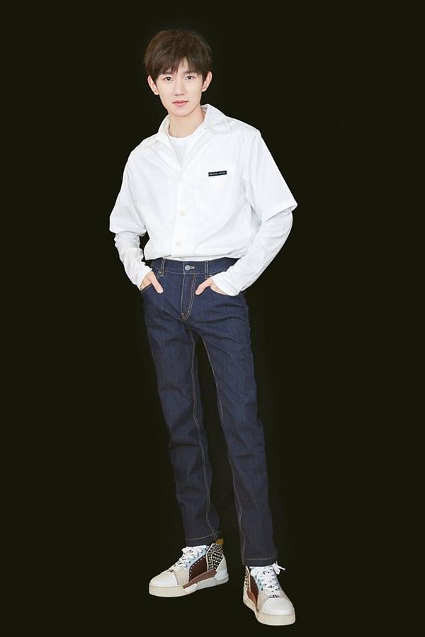 王源参加由教育部与中央电视台合作的大型公益节目《开学第一课》录制。王源亮相。上装:Prada,衬衣,短袖,T恤,长袖,白色,下装:Prada,牛仔裤,深色,鞋:Christian Louboutin,休闲鞋,拼色,铆钉。