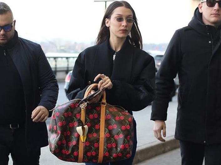 贝拉·哈迪德短夹克喇叭裤手挽SPEEDY机场街拍