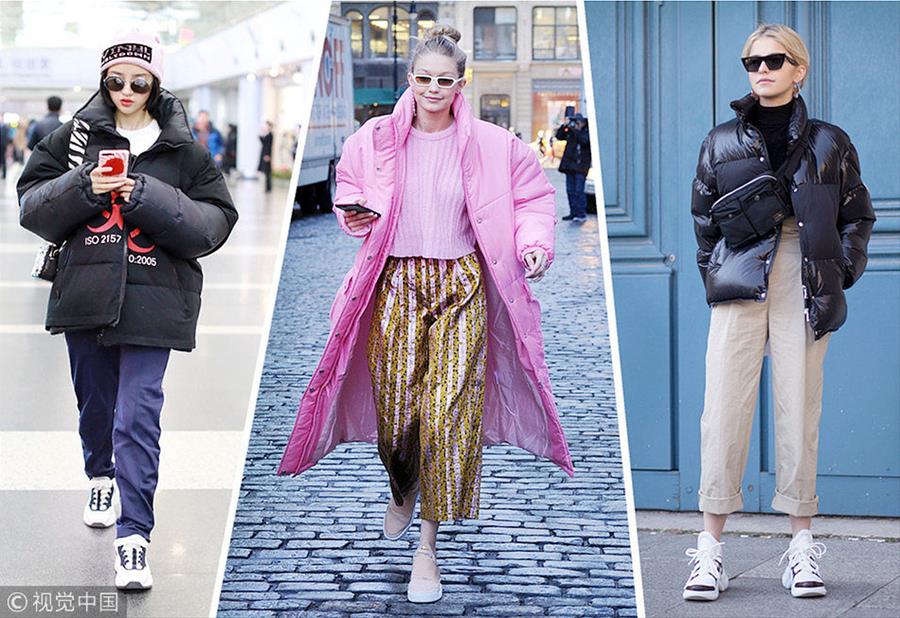 今年冬天的时髦看上去“有点肿”,软绵绵的羽绒服,犹如一支“行走的棉被”。