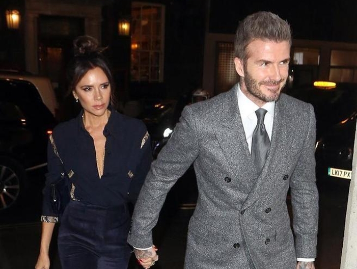 贝嫂全黑look霸气 小贝牵手甜蜜依旧