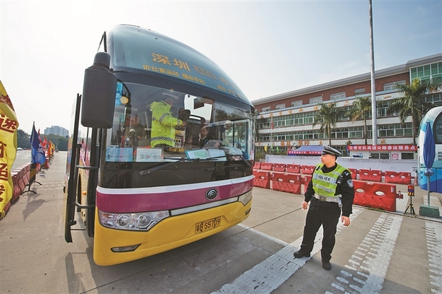 昨日上午10时,记者来到深圳交警设在同乐关现场的稽查点,三四辆客运大巴正在等候安全检查。交警西部高速大队副大队长张良告诉记者,该稽查站24小时运作,只要是7座以上客运车辆,逢车必检,着重查处超员超载、“野鸡车”、疲劳驾驶、客货混行等问题。春运前6天该稽查点日均检查客运车辆约350辆,而2月8日截至早上10点就已经检查了超过120辆车。