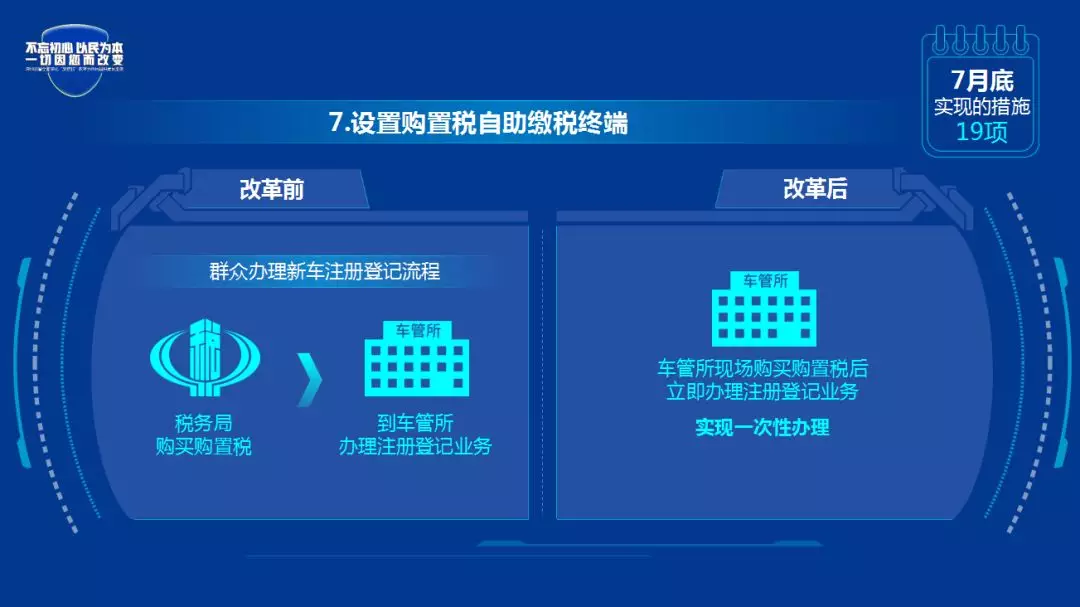 改革后:群众可在车管所现场购买购置税后立即办理注册登记业务,实现一次性办理。