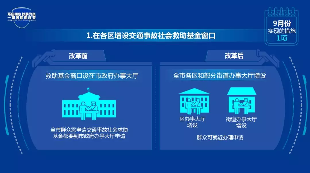 1.在各区增设交通事故社会救助基金窗口。