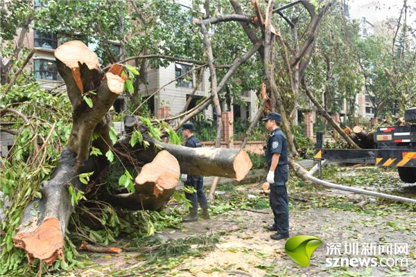 面对如此大型的树木,民警队伍正在思考如何处理这个“大家伙”。