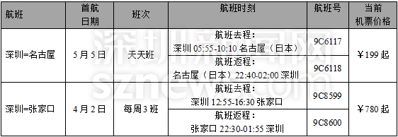 深圳至名古屋新开航线详情