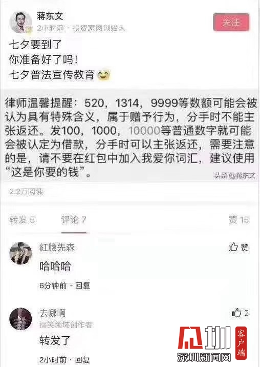 见圳客户端.深圳新闻网2019年8月9日讯(见圳客户端、深圳新闻网记者 张玲)中国传统的节日“七夕”和牛郎织女鹊桥会有关,网友玩起这个典故来,也是有点意思。