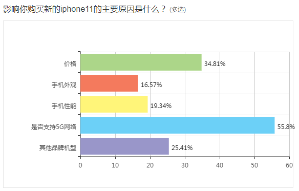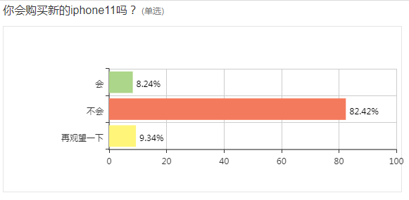 记者在华强北随机采访了近20位市民,九成市民表示不会购买新款iPhone,其原因主要是新款苹果手机并不支持5G网络,且目前国产手机的性能与价格均不输苹果。网络问卷方面,截至记者发稿前,共有443位网友参与网络调查,其中,371位网友表示不会购买,而影响其购买的三大原因分别为价格、其他手机机型及是否支持5G网络。