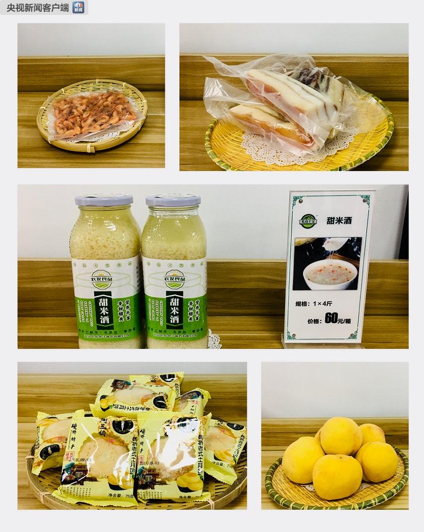 △“光山十宝”是光山县的一张新名片,集聚了县里最有特色的十种农副产品。图中分别是青虾、黑猪腊肉、甜米酒、砖桥月饼、观五玫鲜桃。